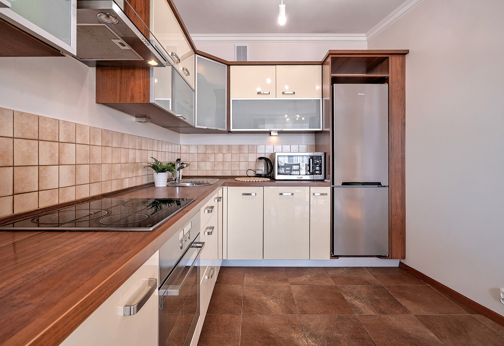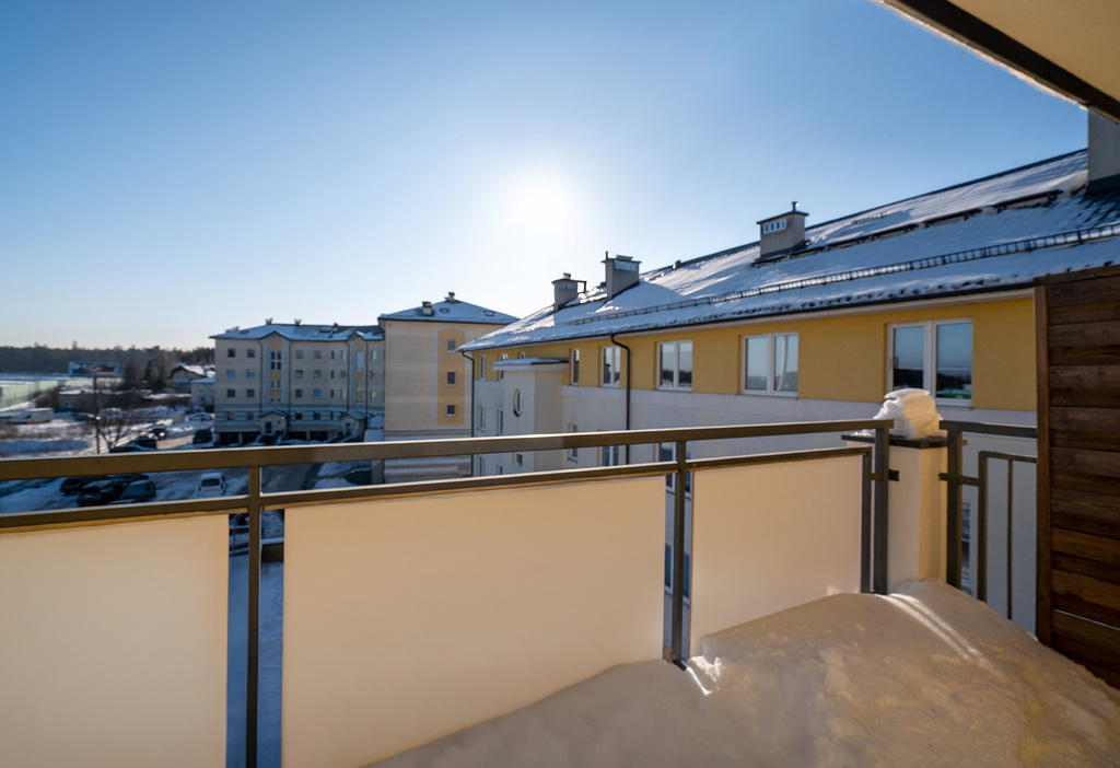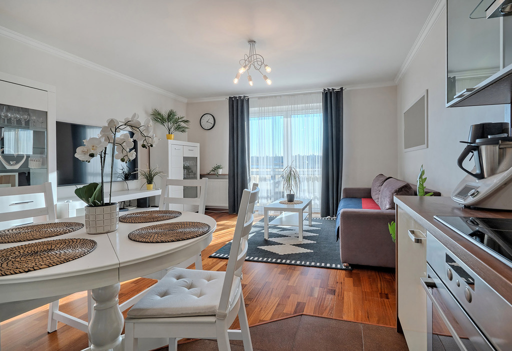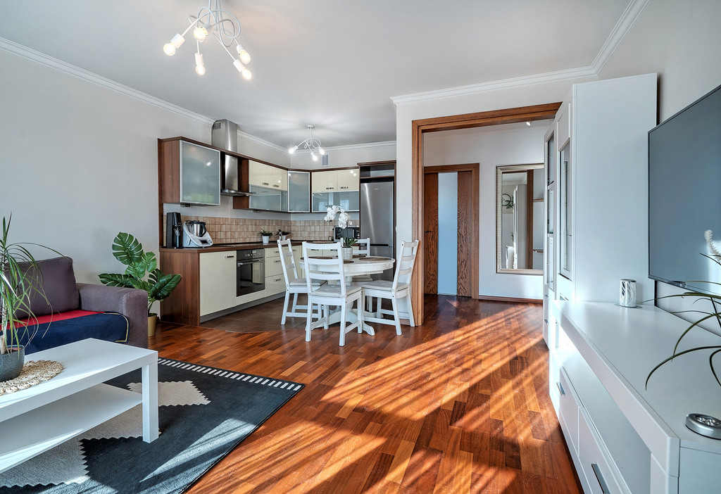 - przestronnego salonu z aneksem kuchennym (26 m2) z wyjściem na słoneczny balkon