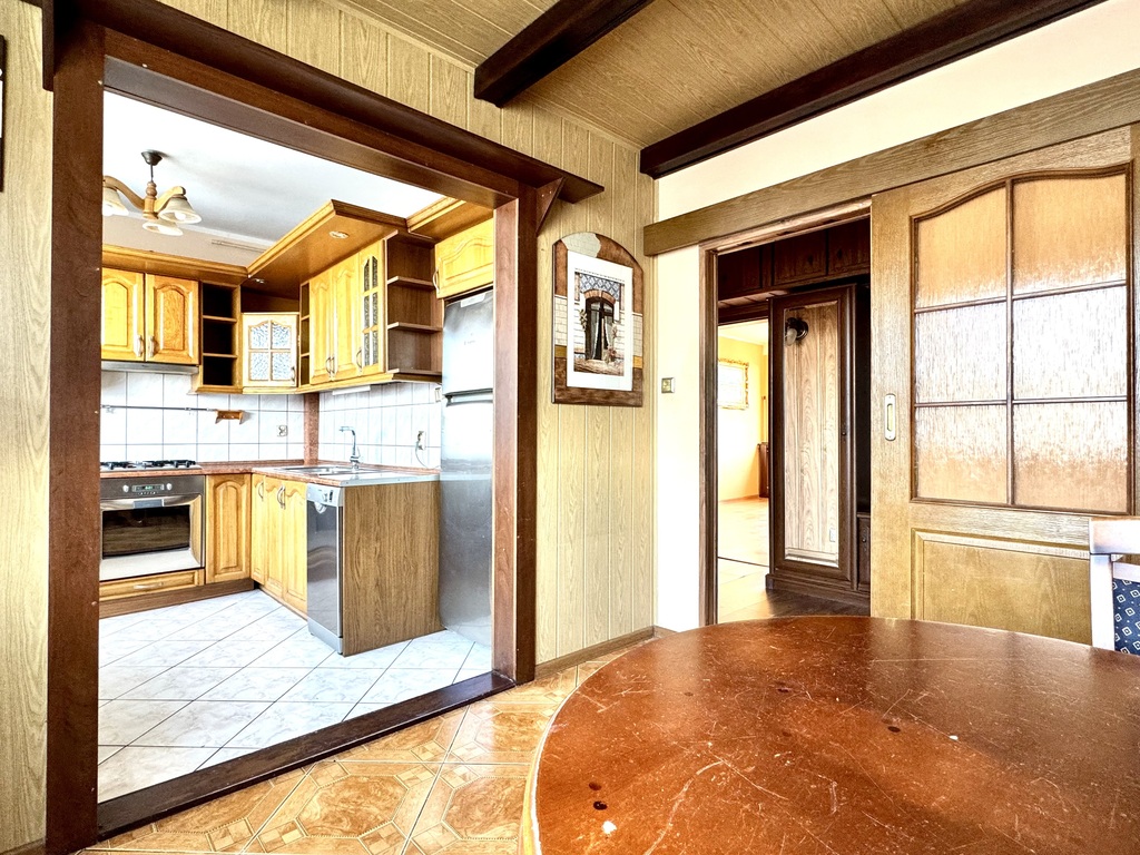 Kuchnia z jadalnią – 17 m² – przerobiona z dodatkowego pokoju, w pełni wyposażona, z meblami z litego drewna