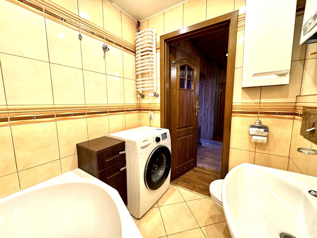 Łazienka – 3,5 m² – z dużą wanną i miejscem na pralkę oraz suszarkę