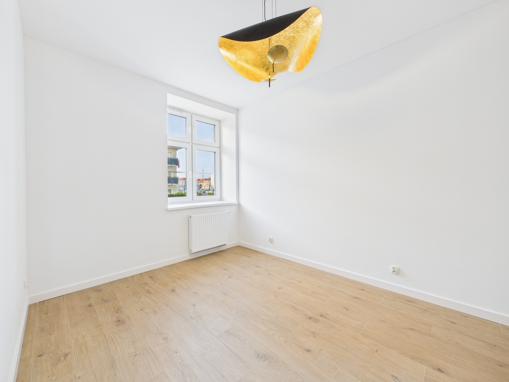 Mieszkanie wykończone pod klucz, o powierzchni użytkowej 49,83 m², położone na parterze w nowo odrestaurowanym budynku dawnych koszar przy ulicy Sowińskiego w Głogowie.