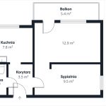 • salon / pokój dzienny – 12,9 m² z wyjściem na balkon (5,4 m²),