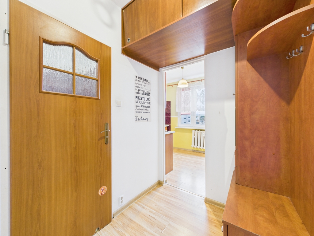 To duży atut przy niewielkim metrażu – umożliwia oddzielenie strefy dziennej od sypialnianej, co znacząco podnosi komfort codziennego życia. Mieszkanie jest idealne zarówno do zamieszkania, jak i jako inwestycja pod wynajem.