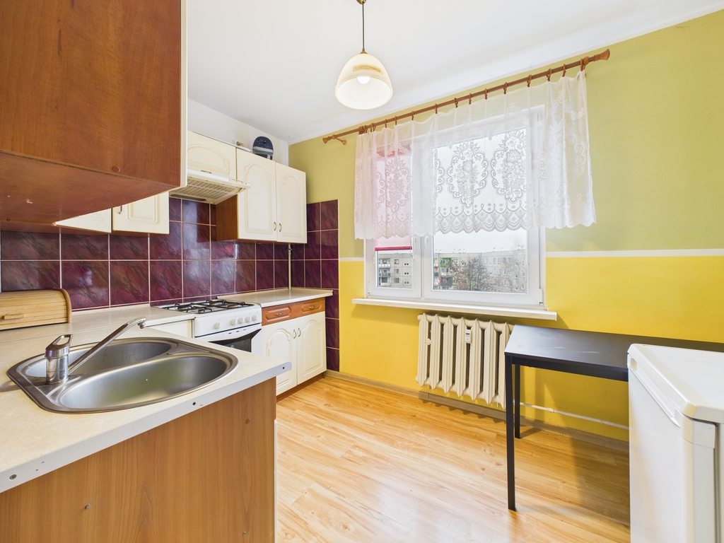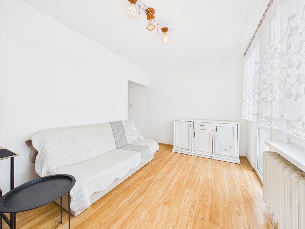 Na sprzedaż funkcjonalne mieszkanie o powierzchni 37,7 m², pierwotnie kawalerka, przekształcona na dwa pokoje (jeden pokój przechodni), znajdujące się na 4 piętrze, czteropiętrowego bloku.