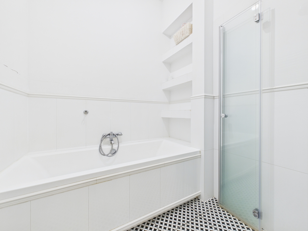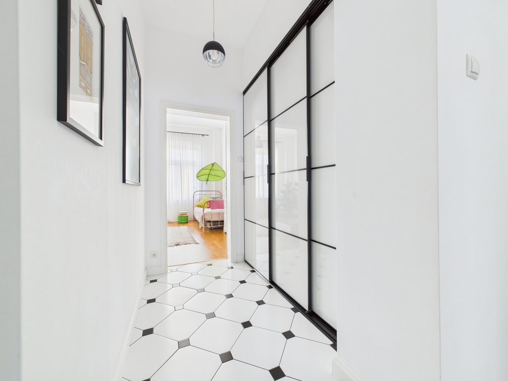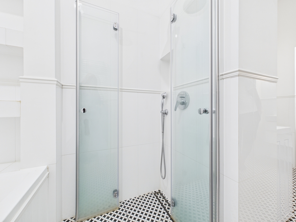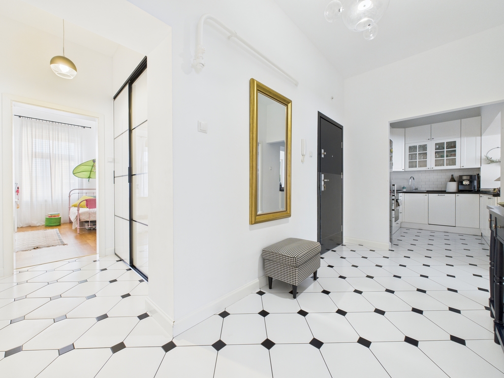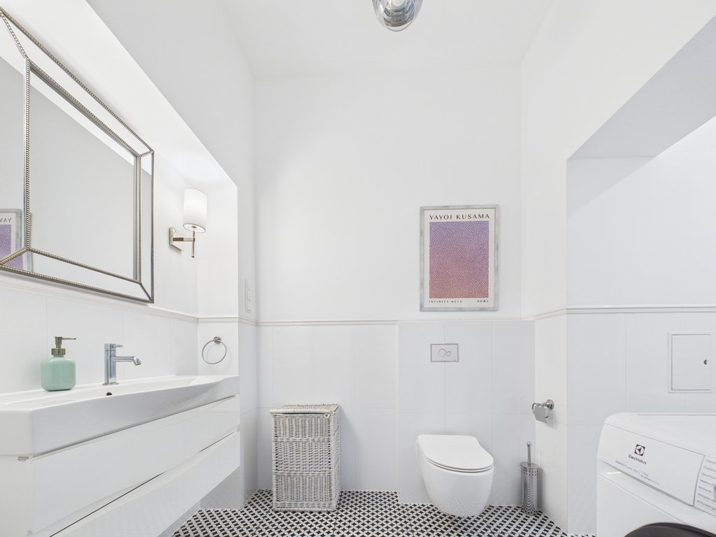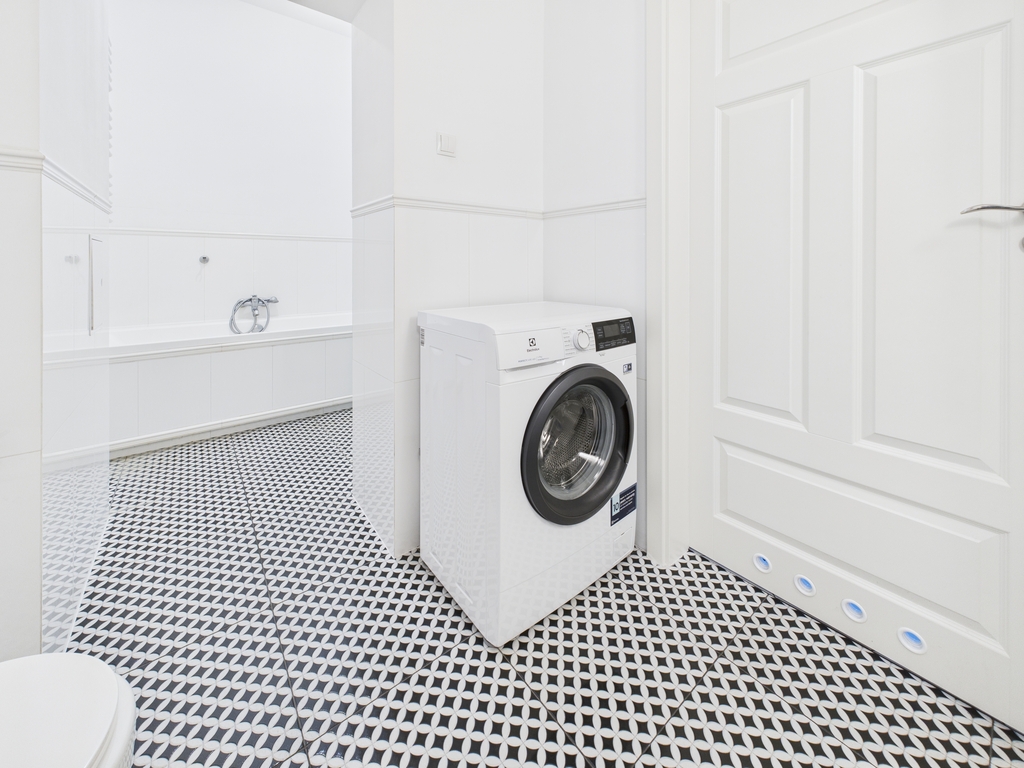 - łazienka została powiększona o dodatkowe pomieszczenie, do którego, przed remontem, wejście było od sypialni, co pozwoliło na zainstalowanie w łazience wanny oraz kabiny prysznicowej z odpływem liniowym,