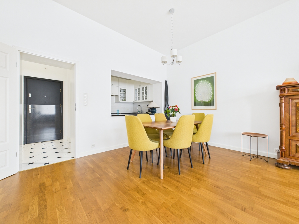 Nieruchomość oferuje dwie przestronne i ustawne sypialnie idealne do relaksu, pozwalające także na wygospodarowanie miejsca do pracy. Duży salon emanuje przytulna atmosferą, idealna do spotkań towarzyskich lub wypoczynku.