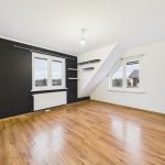 Bezczynszowe mieszkanie 3-pokojowe o powierzchni użytkowej 82,38 m², położone na piętrze domu wielorodzinnego podzielonego na dwa niezależne lokale (parter i piętro). Do lokalu przynależy garaż z pomieszczeniem gospodarczym o łącznej powierzchni 36,47 m² oraz własny ogród.