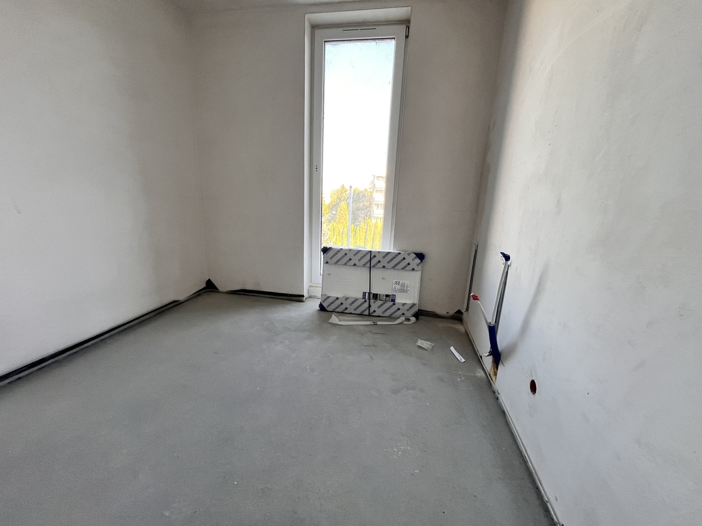 - Mieszkanie jest wyposażone w białe grzejniki płytowe.