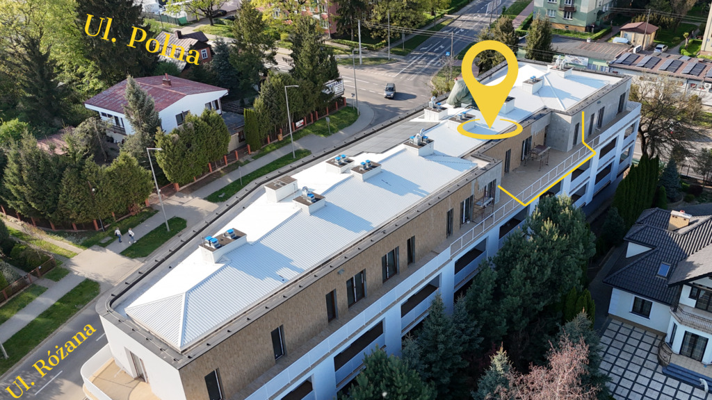 - Własny taras umożliwia zamontowanie jednostki klimatyzacyjnej, co gwarantuje komfort termiczny nawet podczas najgorętszych dni.