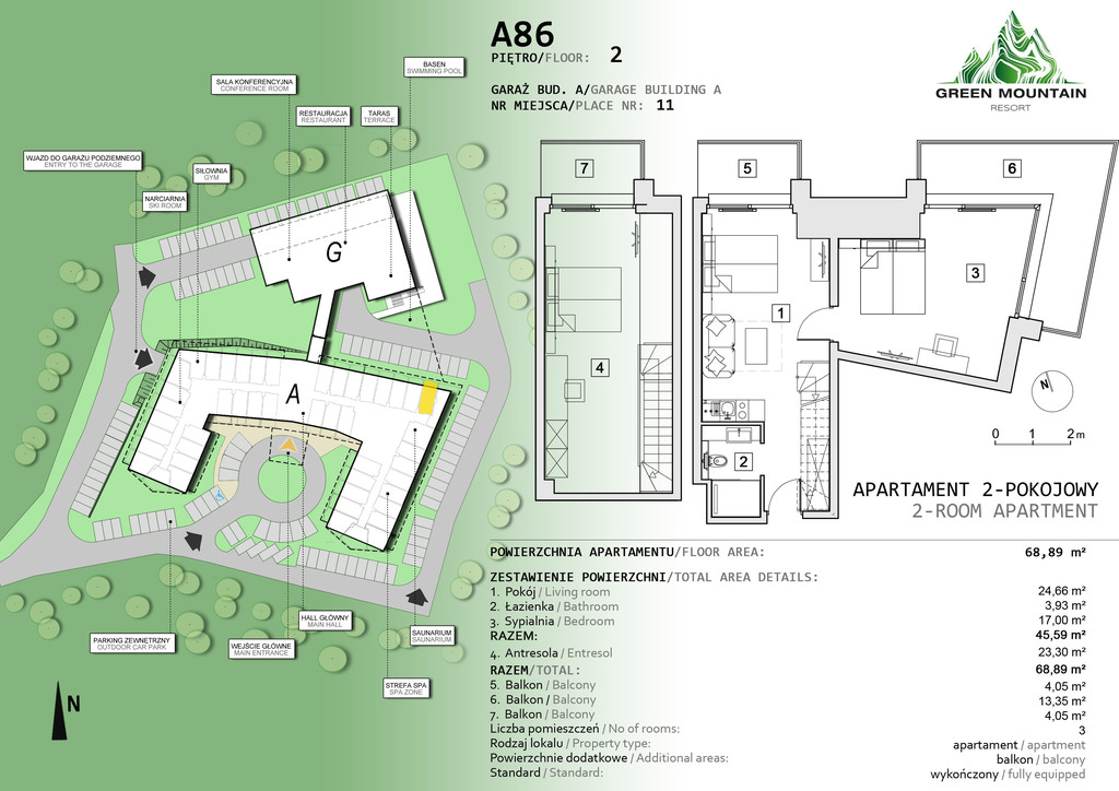 GREEN MOUNTAIN 5*w Karpaczu.Tylko u NAS nie szukaj dalej.Apartament znajduje się w budynku hotelowym; apartament dwupoziomowy; 3 balkony; miejsce parkingowe w garażu podziemnym.