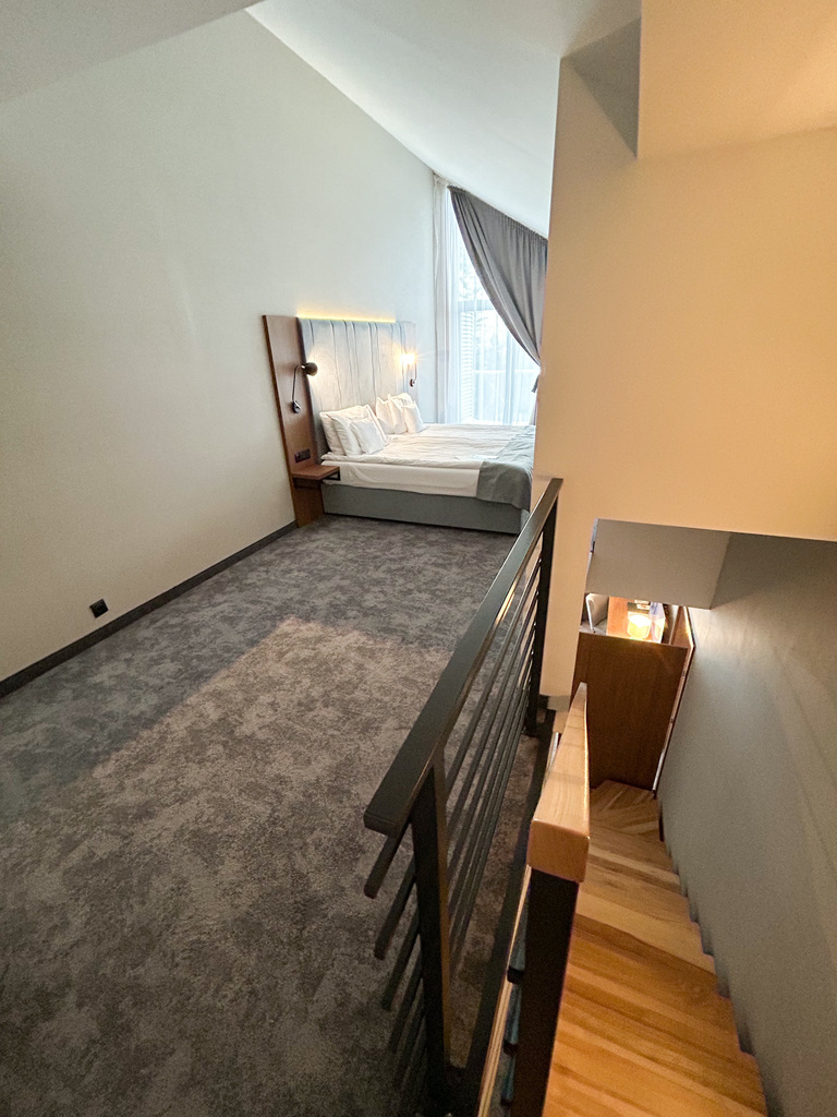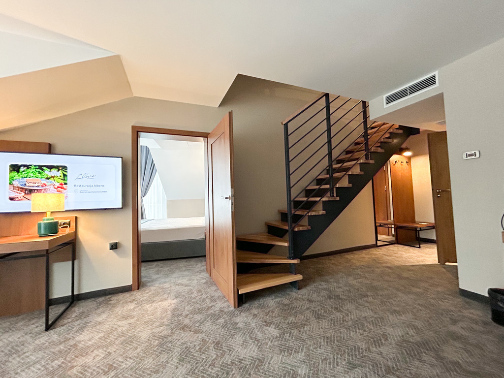 APARTAMENTDwupoziomowy apartament znajduje się w budynku hotelowym , jego metraż to 68,89 m2.