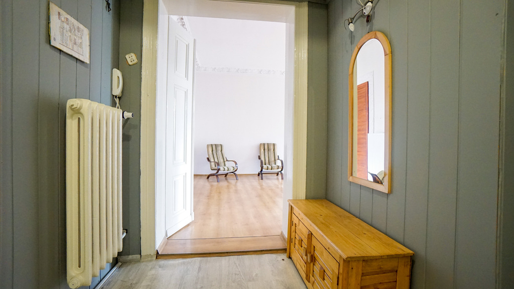 Mieszkanie posiada wiele cech charakterystycznych dla przedwojennych kamienic: wysokie sufity, oryginalne sztukaterie (ozdobne listwy przysufitowe), duże okna oraz