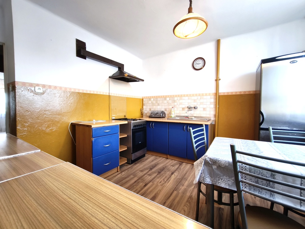 Przestronna kuchnia sprzyja wspólnym chwilom, obok wygodna łazienka i osobne WC dla komfortu domowników i gości.