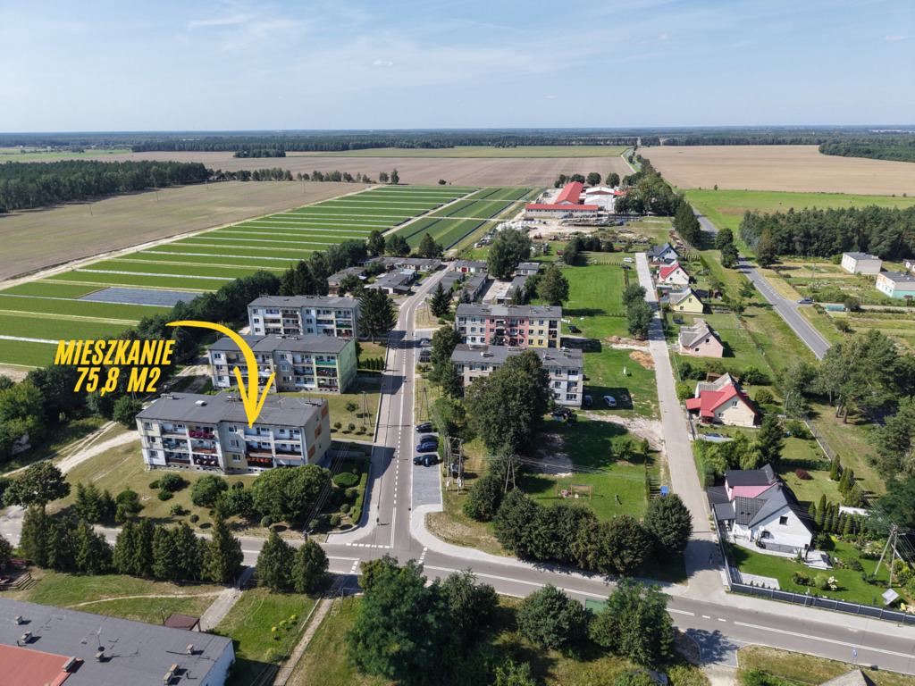 75,8 m² (3 pokoje + mały pokój idealny na domowe biuro, przestronna kuchnia, przedpokój, łazienka, oddzielne WC).