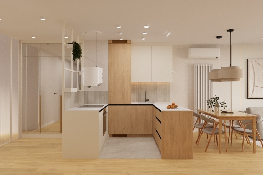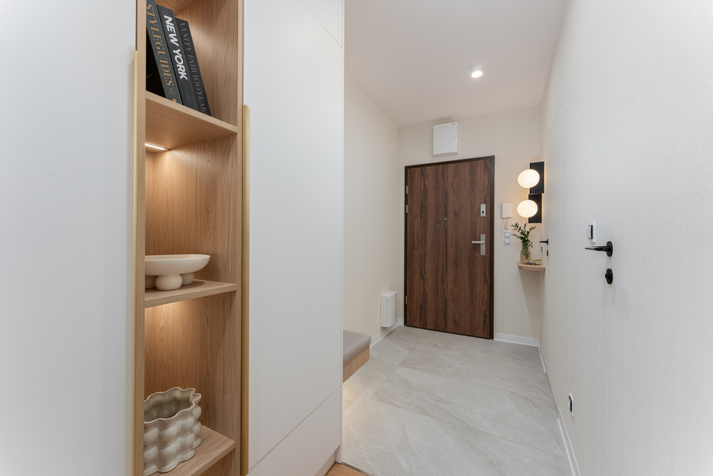 Apartament jest w trakcie wykańczania pod klucz i zostanie oddany jako gotowiec inwestycyjny, w pełni urządzony i wyposażony. Zastosowane zostaną wysokiej jakości materiały wykończeniowe. Na podłogach znajdą się panele Quick Step dąb naturalny, a meble kuchenne wykonane zostaną na wymiar przez stolarza. Kuchnia w kształcie litery U z konglomeratowym blatem Staron zostanie wyposażona w sprzęt AGD: płytę indukcyjną, piekarnik, mikrofalówkę, zmywarkę, lodówkę i okap.