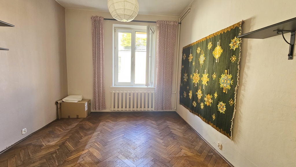 Jasne, 2-pokojowe mieszkanie z przestronną kuchnią położone na drugim piętrze budynku z 1940 roku. Kamienica jest zadbana, ma odnowioną klatkę schodową. Mieszkanie może stanowić dobrą inwestycję pod wynajem dzięki praktycznemu zaplanowaniu pomieszczeń.