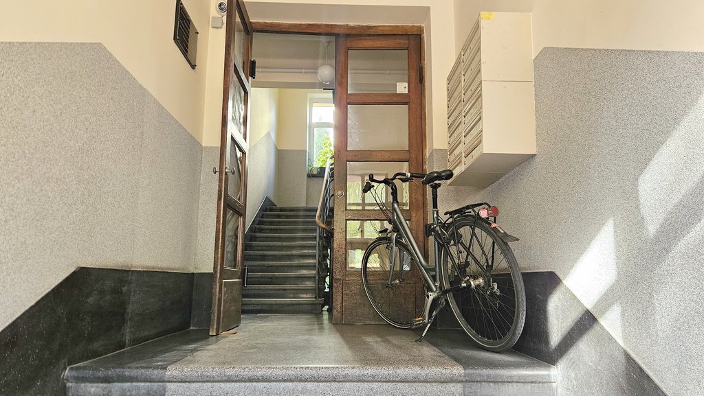 Przy kamienicy znajduje się niewielki ogród a w piwnicy zlokalizowana jest dostępna dla mieszkańców rowerownia.