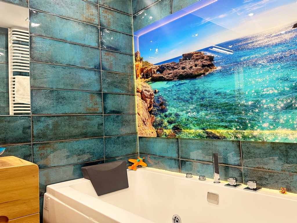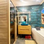 - łazienka z toaletą, wanną z hydromasażem oraz dwu osobową sauną na podczerwień