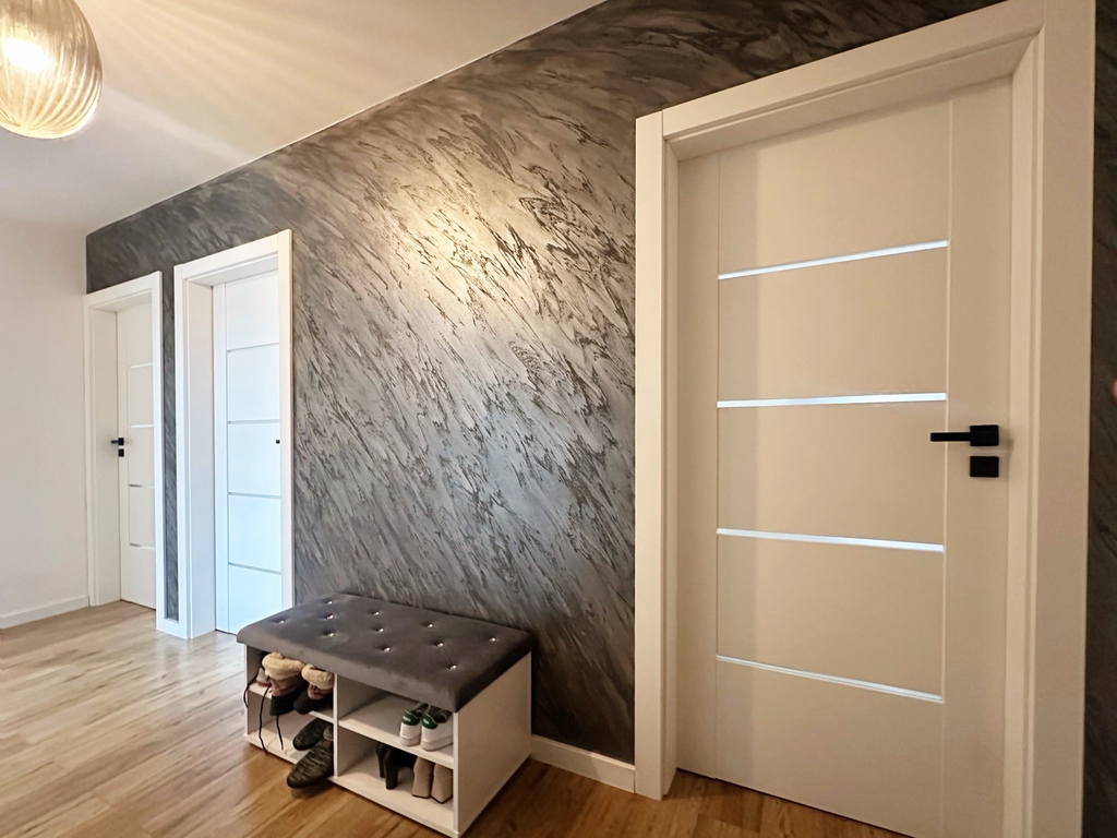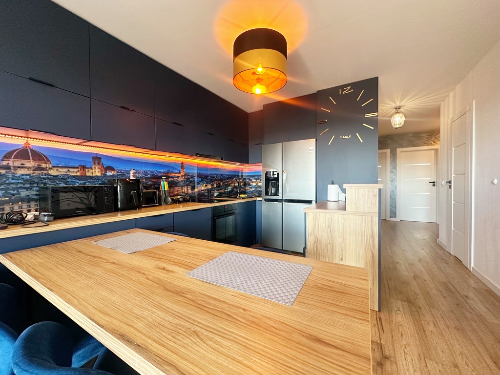 Jest wykończone wysokiej klasy materiałami i wyposażone w niezbędny sprzęt AGD i RTV, pokoje są przestronne, każdy z wyjściem na balkon dzięki czemu są świetnie doświetlone, stwarzają wiele możliwości zaaranżowania swojej wymarzonej przestrzeni.