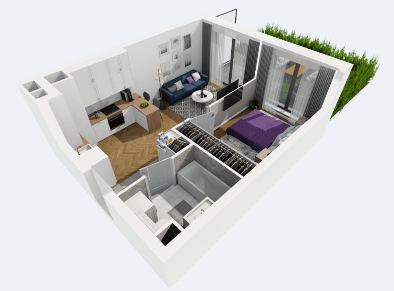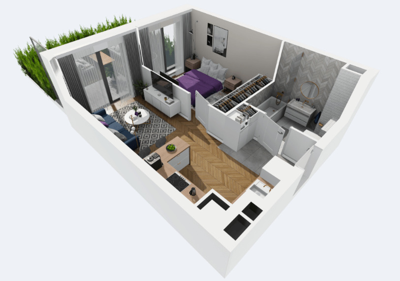 Przedstawione wizualizacje i grafiki mają charakter wyłącznie poglądowy i stanowią wyłącznie materiał pomocniczy, ułatwiający zorientowanie się w ogólnym wyglądzie oferowanej nieruchomości.