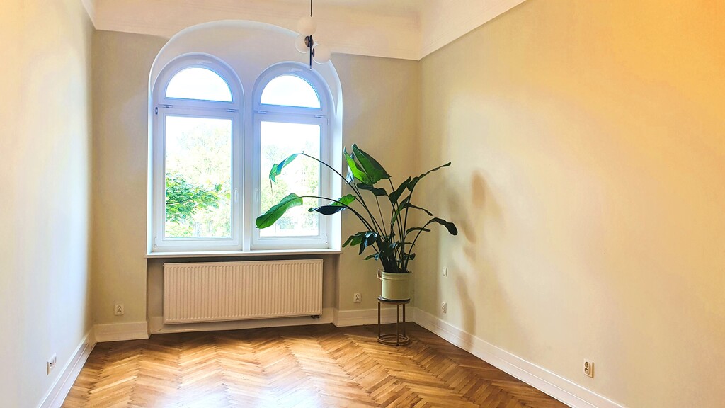 Apartament 103 m2 znajduje się mieści się w kamienicy z 1913 roku, przy ulicy Lubomirskiego.