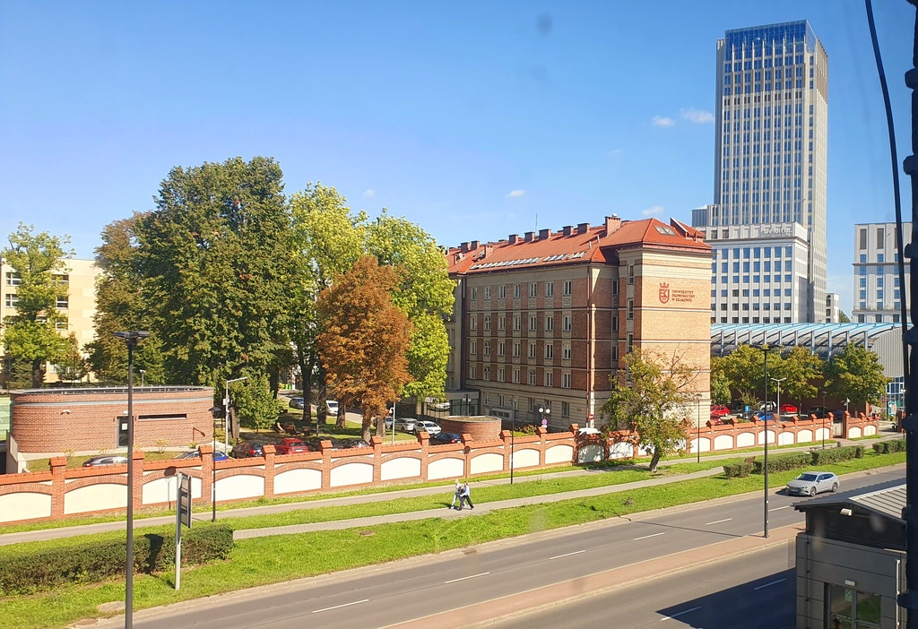 Apartament znajduje się na drugim piętrze i z jego okien roztacza się piękny widok na budynki Uniwersytetu Ekonomicznego i Unity Centre.