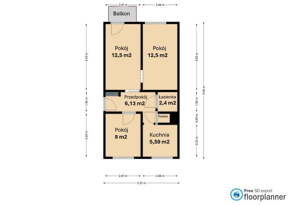 Powierzchnia: 48,49 m² + 2 piwnice po 4,67 m²