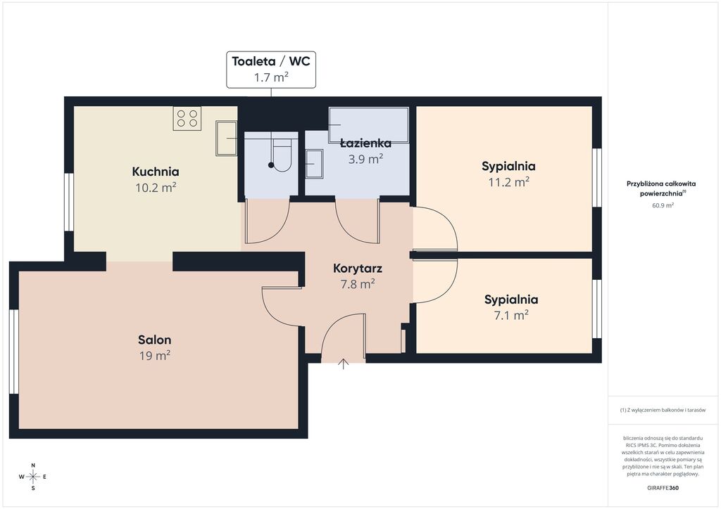 Przedstawione wizualizacje i grafiki mają charakter wyłącznie poglądowy i stanowią wyłącznie materiał pomocniczy, ułatwiający zorientowanie się w ogólnym wyglądzie oferowanej nieruchomości.