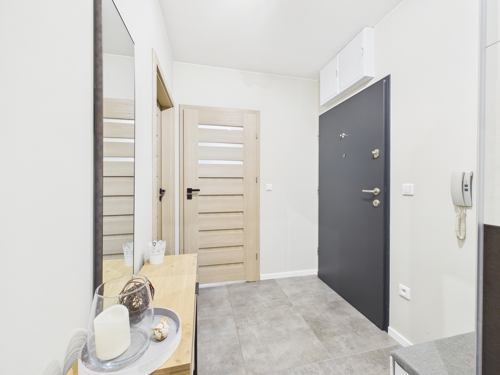 Nieruchomość ma 52 m2 i znajduje się w budynku z 2018 roku z windą, jest w bardzo dobrym stanie i wymaga jedynie odświerzenia.