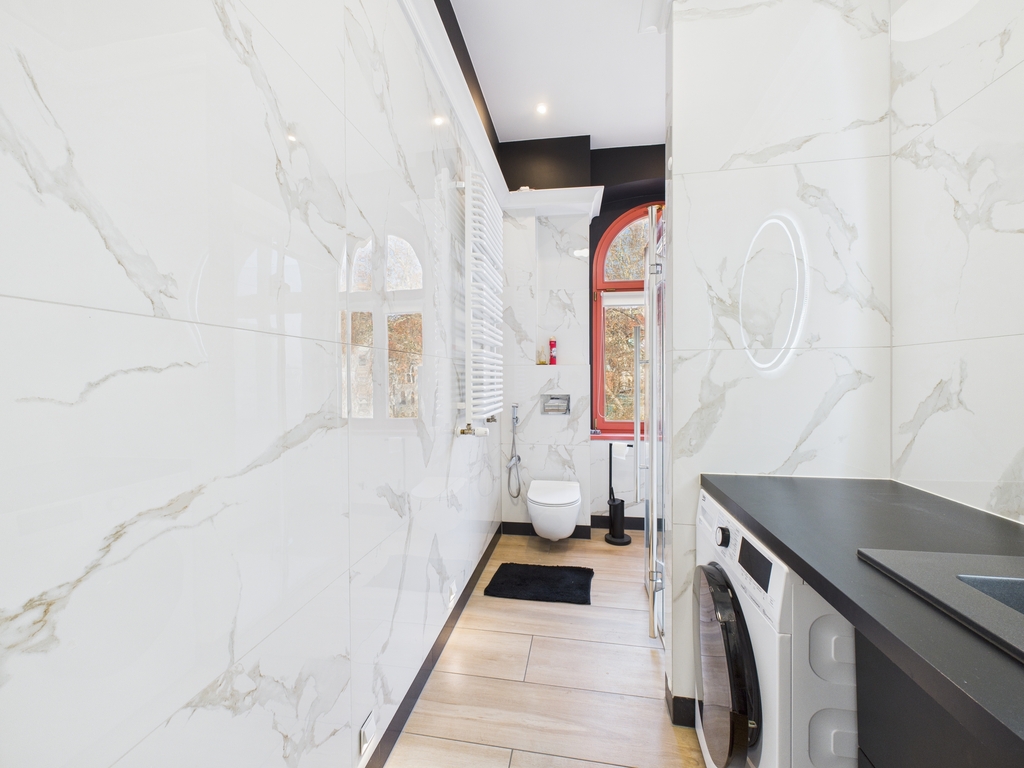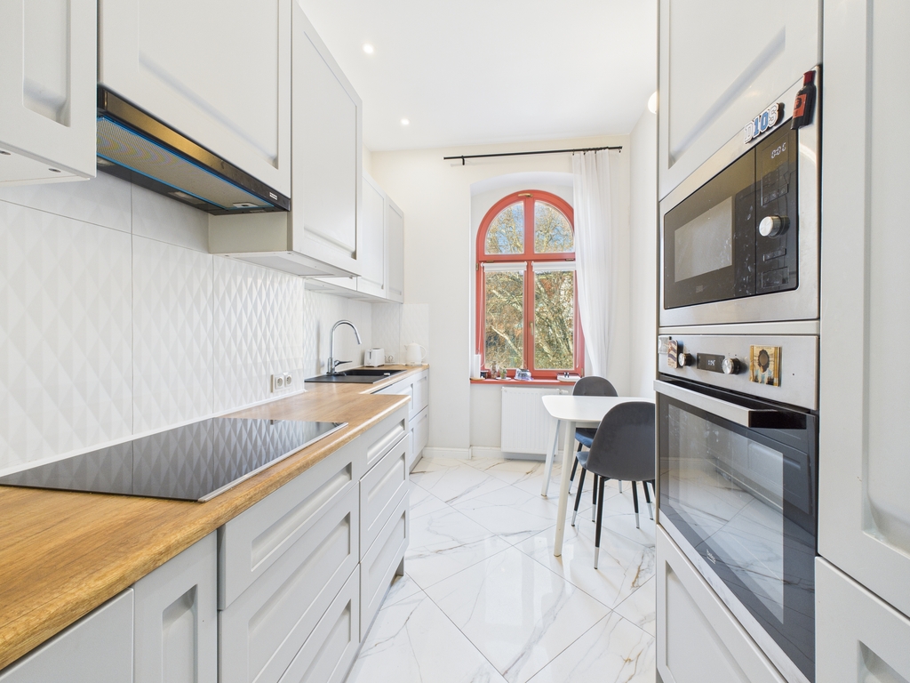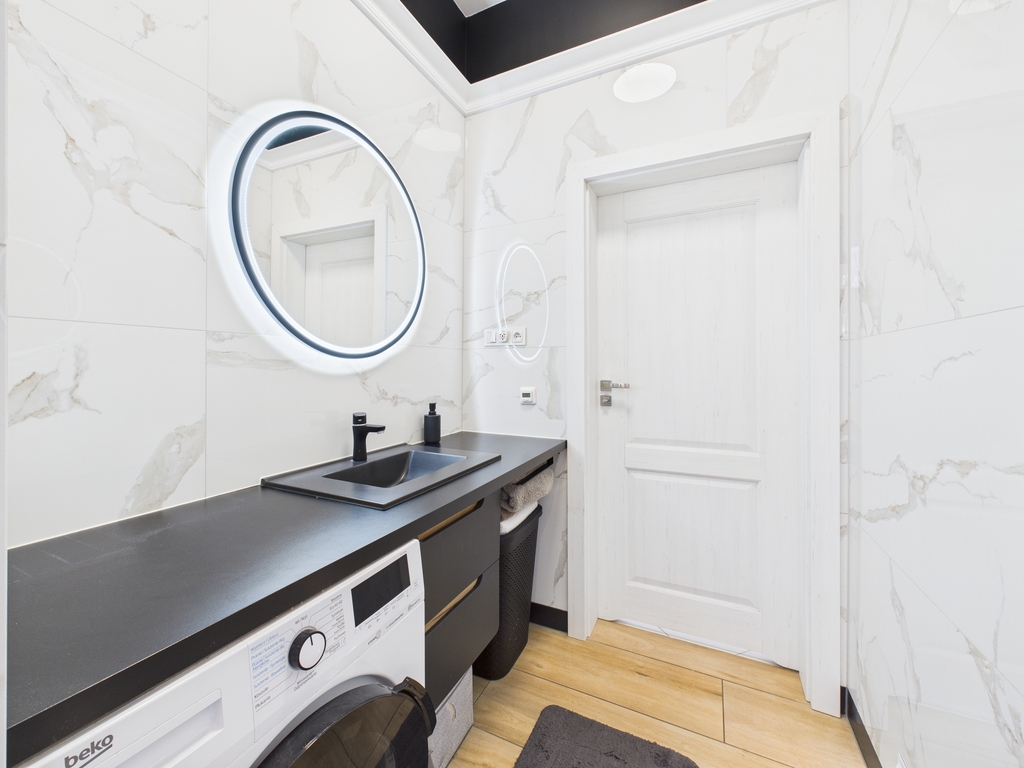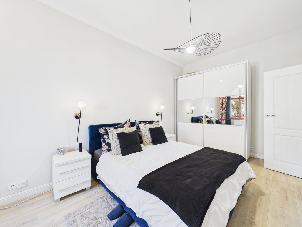 Mieszkanie urządzone jest bardzo gustownie i stylowo .Do wykończenia użyto materiały wysokiej klasy.