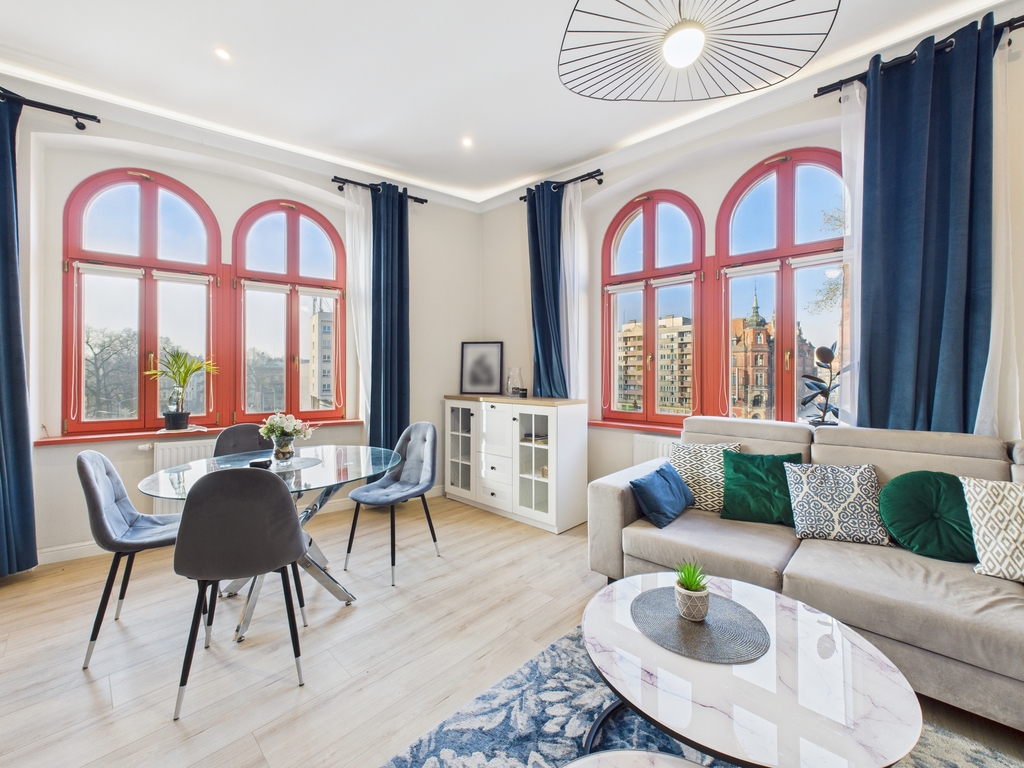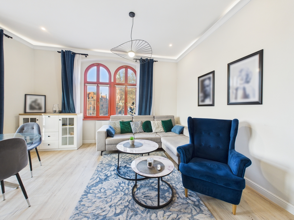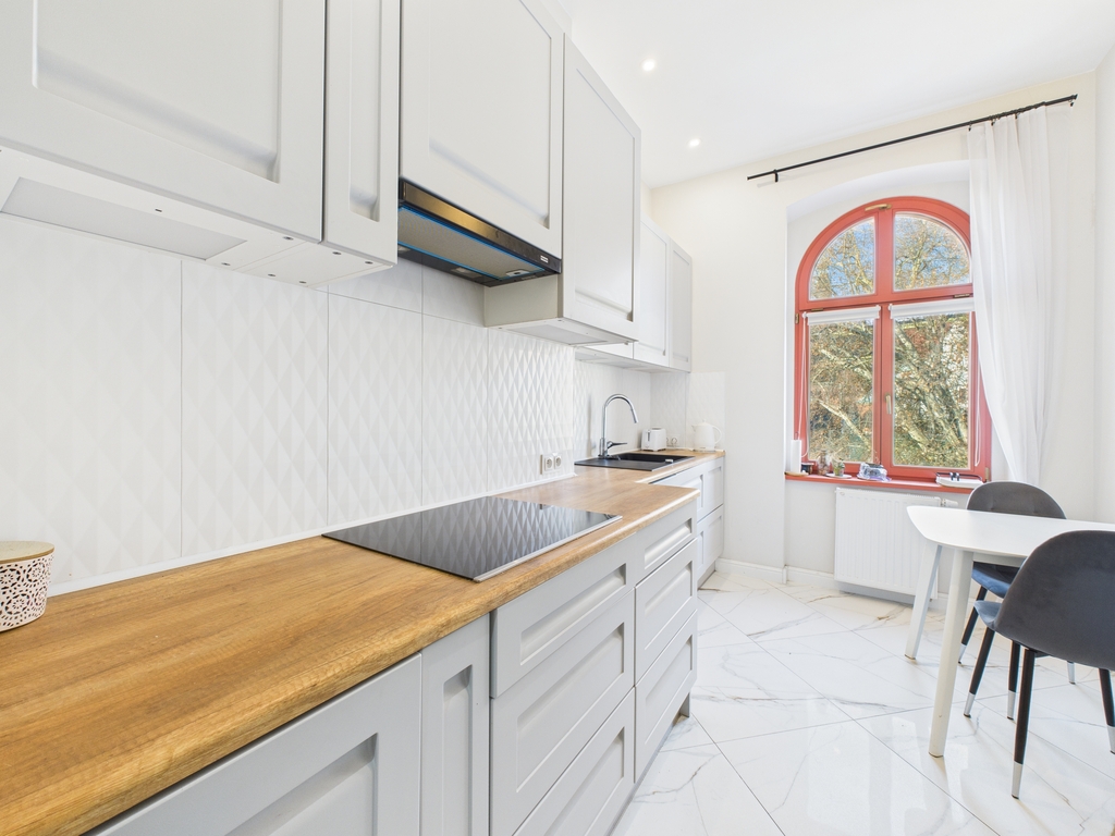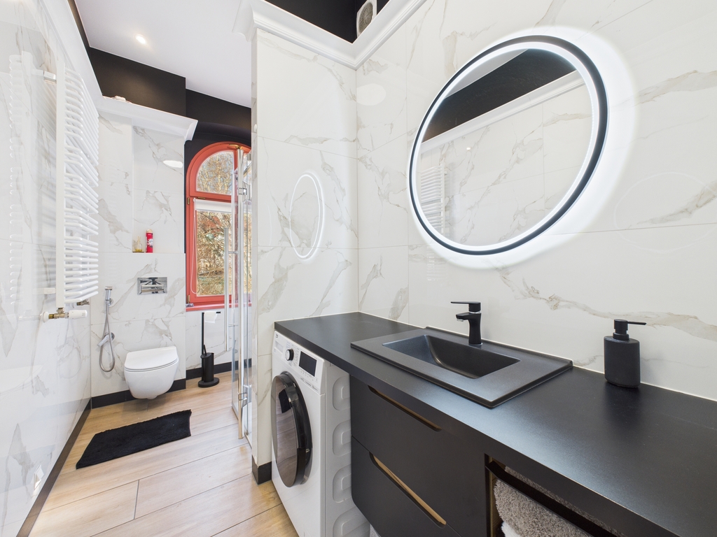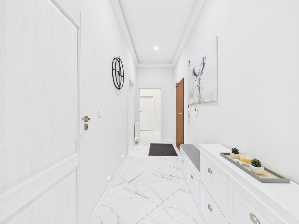 Mieszkanie urządzone jest bardzo gustownie i stylowo .Do wykończenia użyto materiały wysokiej klasy.
