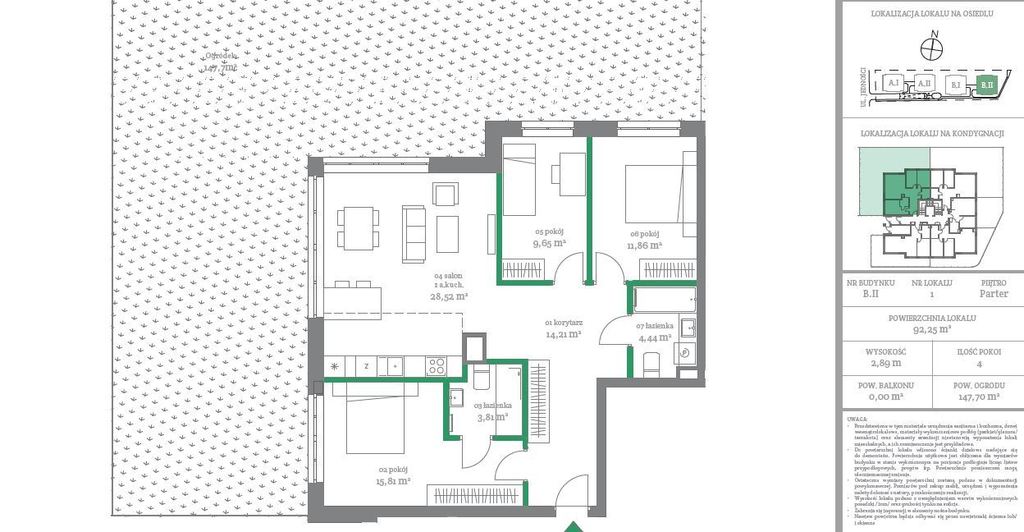 147,71 m² ATUTY INWESTYCJI: - tylko 63 lokale w czterech 2 piętrowych budynkach na kameralnym zamkniętym osiedlu,