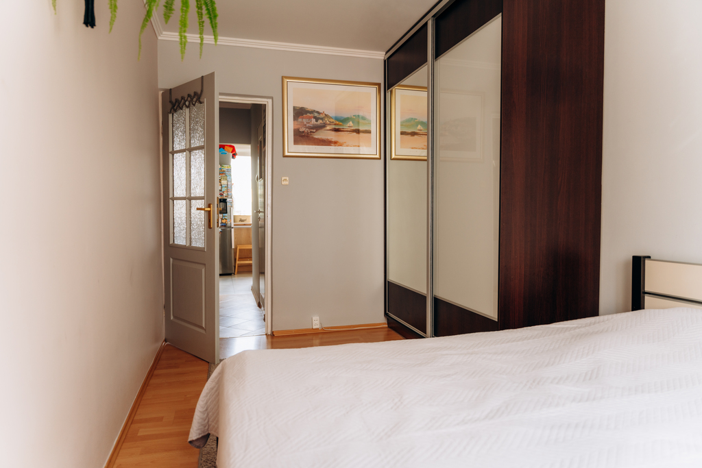 W skład lokalu wchodzą 3 ustawne pokoje, osobna kuchnia, łazienka oraz przedpokój. Dzięki przemyślanemu układowi mieszkanie jest wygodne w codziennym użytkowaniu i łatwe do aranżacji według własnych potrzeb.