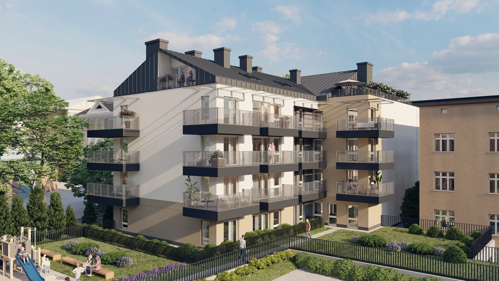 Niska, kameralna zabudowa w otoczeniu tworzy przyjazny klimat osiedla, które będzie świetnym miejscem zarówno dla singli, par, jak i rodzin z dziećmi.