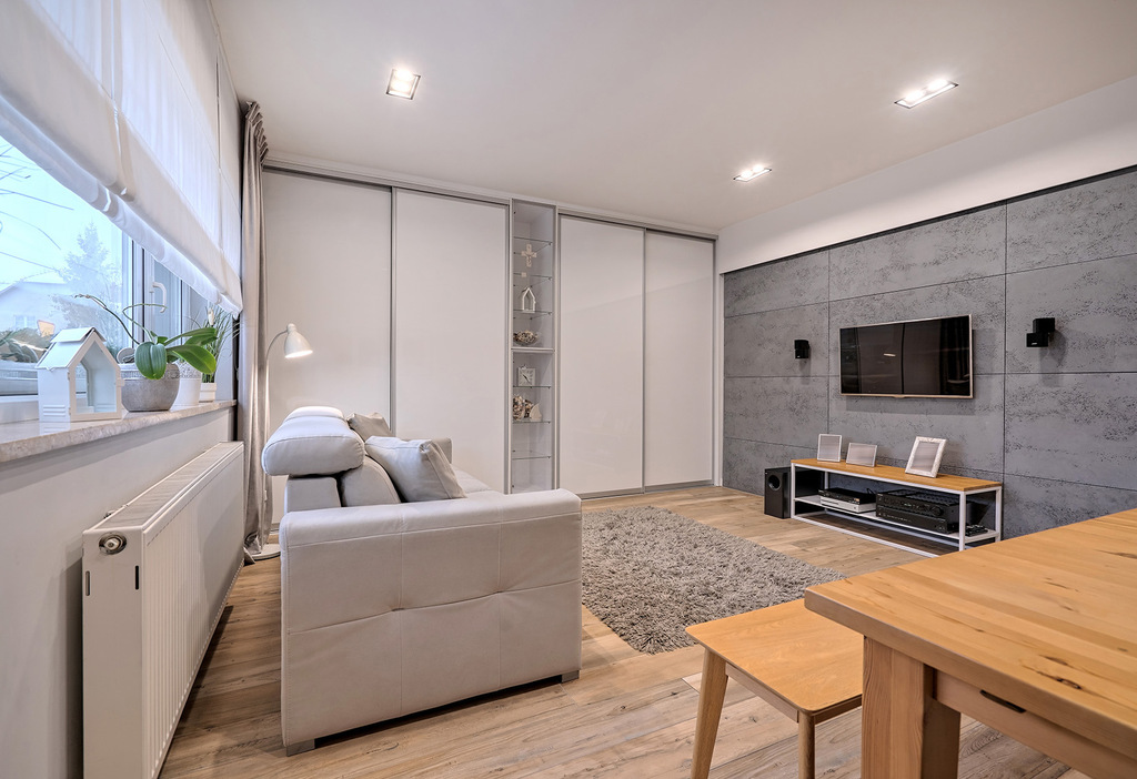 W wiatrołapie oraz przedpokoju zastosowano ogrzewanie podłogowe i grzejniki płytowe, natomiast w łazience – ogrzewanie podłogowe oraz grzejnik drabinkowy. W pozostałych pomieszczeniach zamontowano grzejniki płytowe.