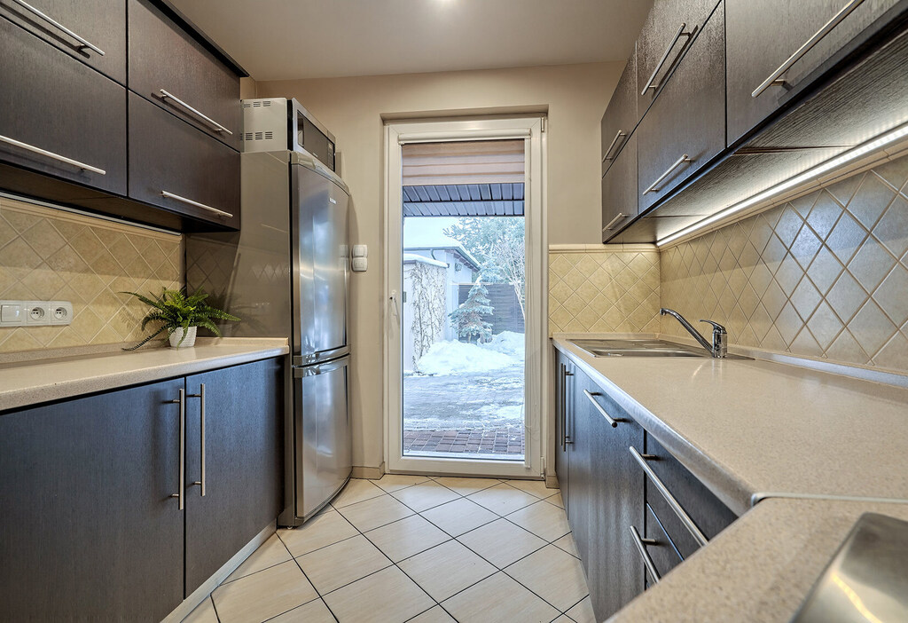 - Kuchnia 7,3m2  w pełni wyposażona ( lodówka, płyta gazowa, piekarnik, zmywarka)