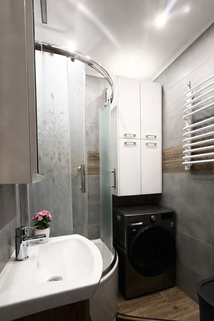 - Łazienka: Estetycznie wykończona, wyposażona w prysznic oraz osobno WC.