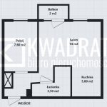 • salon połączony z kuchnią (14 m2 + 5,80 m2)