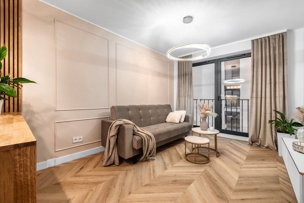 Standard wykończenia: zastosowano wysokiej jakości materiały, podłogi wyłożone panelami oraz gresem, gładzie na ścianach, okna PCV, glazura i zabudowa w kuchni (w tym piekarnik i płyta indukcyjna, okap kuchenny a także lodówka), łazienka z wanną, gresem na ścianach, szafkami i oświetleniem LED. W mieszkaniu rozprowadzona instalacja pod klimatyzację, w pomieszczeniach ogrzewanie podłogowe z możliwością sterowania.