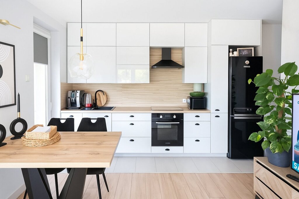 Za dodatkową dopłatą, na życzenie, w mieszkaniu może pozostać pełne, wolnostojące wyposażenie widoczne na zdjęciach.
