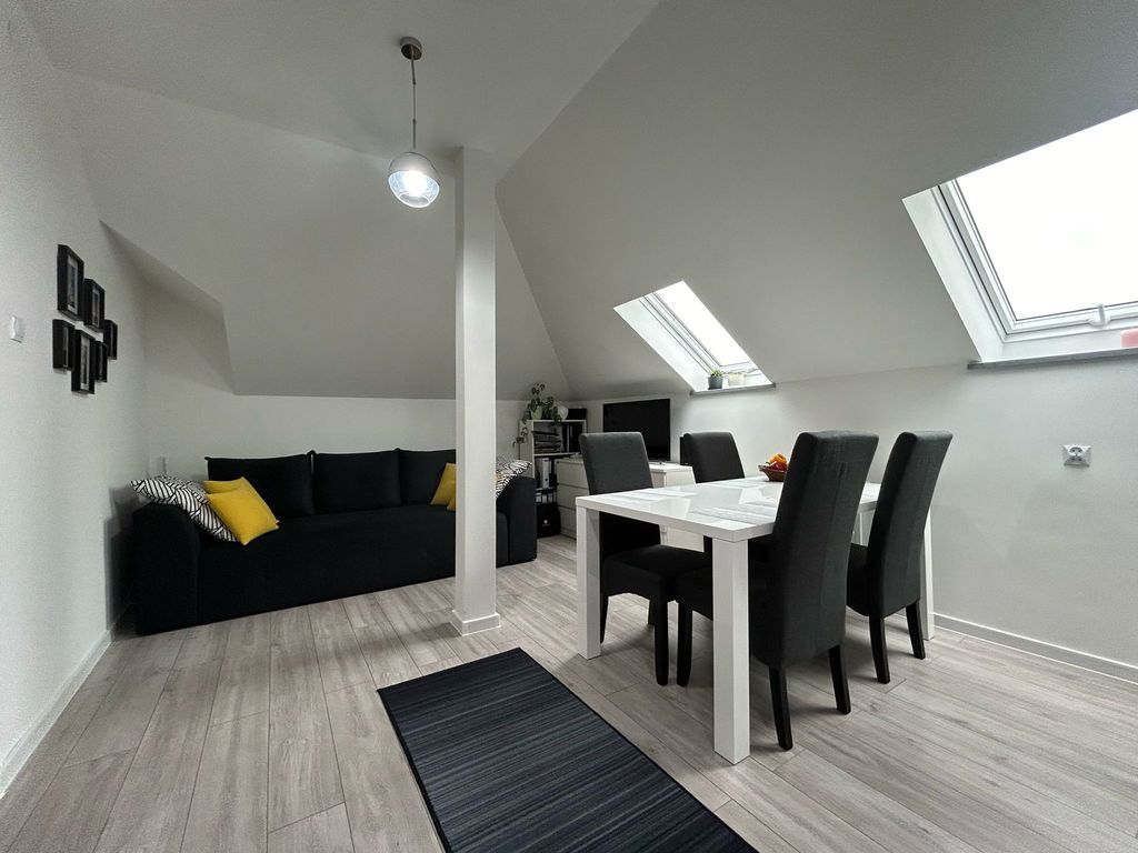 * Mieszkanie 2 lata temu przeszło generalny remont i zostało urządzone z myślą o nowoczesnym stylu życia. Jasne, minimalistyczne wnętrza są podkreślone przez skosy dachu, tworząc niepowtarzalny charakter przestrzeni.
