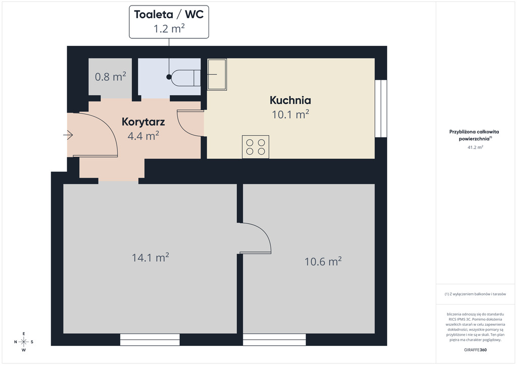 duża kuchnia• łazienka z wydzieloną przestrzenią na WC