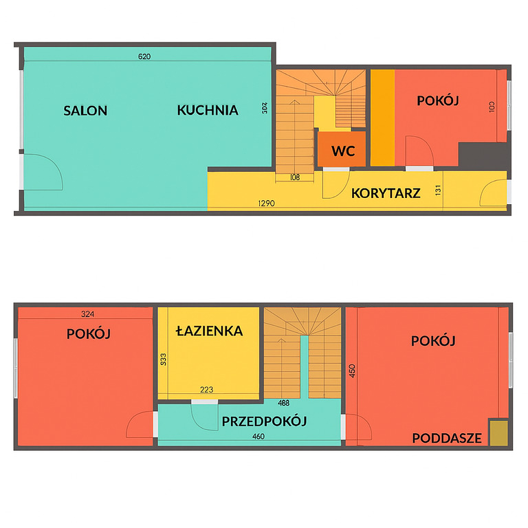 Powierzchnia użytkowa wynosi 80,65 metrów kwadratowych, dodatkowo zyskujemy ok 40m2 powierzchni poddasza do zagospodarowania jako biuro/garderobę/schowek.
