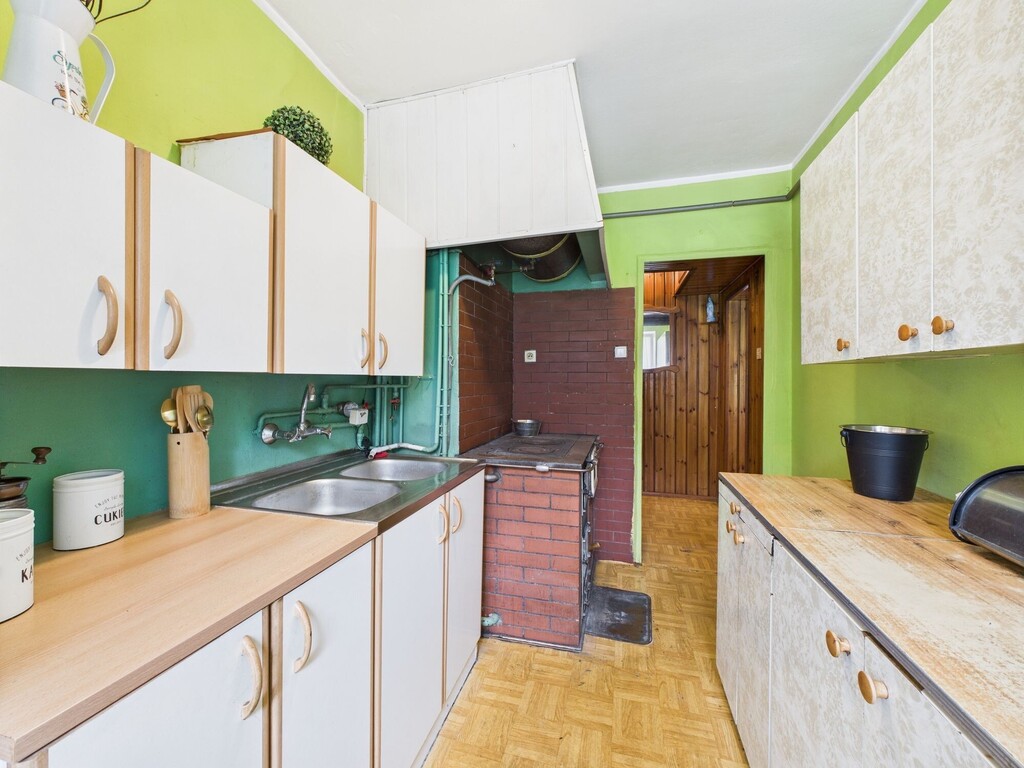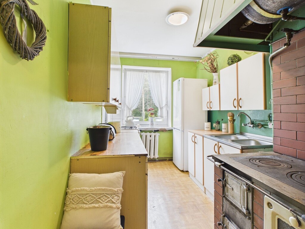 - oddzielna kuchnia z oknem i piecem kaflowym