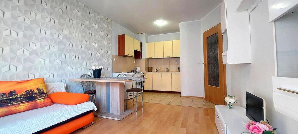 Mieszkanie jest w pełni umeblowane oraz wyposażone w niezbędny sprzęt AGD i RTV.