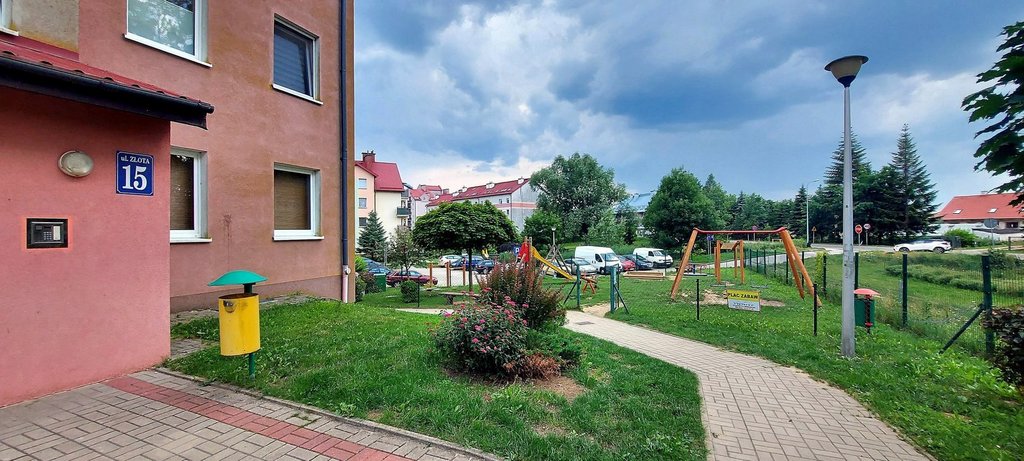 Słoneczne, dwupokojowe mieszkanie z aneksem kuchennym usytuowane na pierwszym piętrze, w bloku przy ul. Złotej.