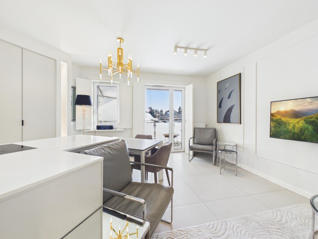 Wykończenie w nowoczesnym stylu oraz pełne umeblowanie zachęca do zamieszkania.