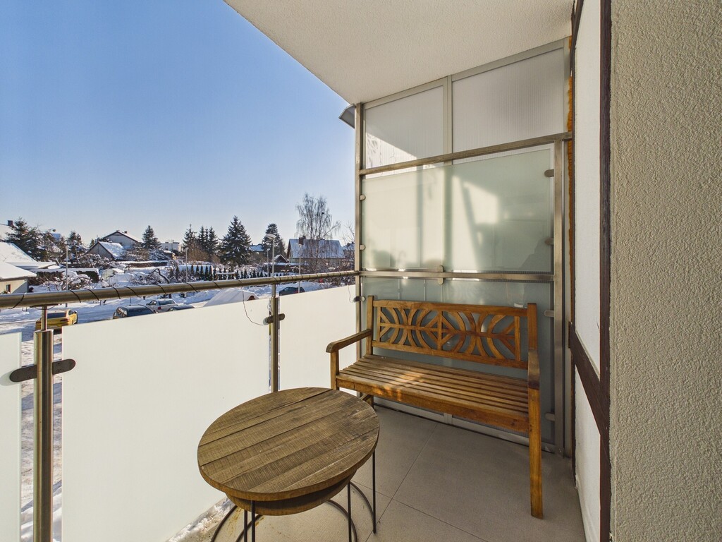 Mieszkanie posiada duży balkon z widokiem na okolicę.