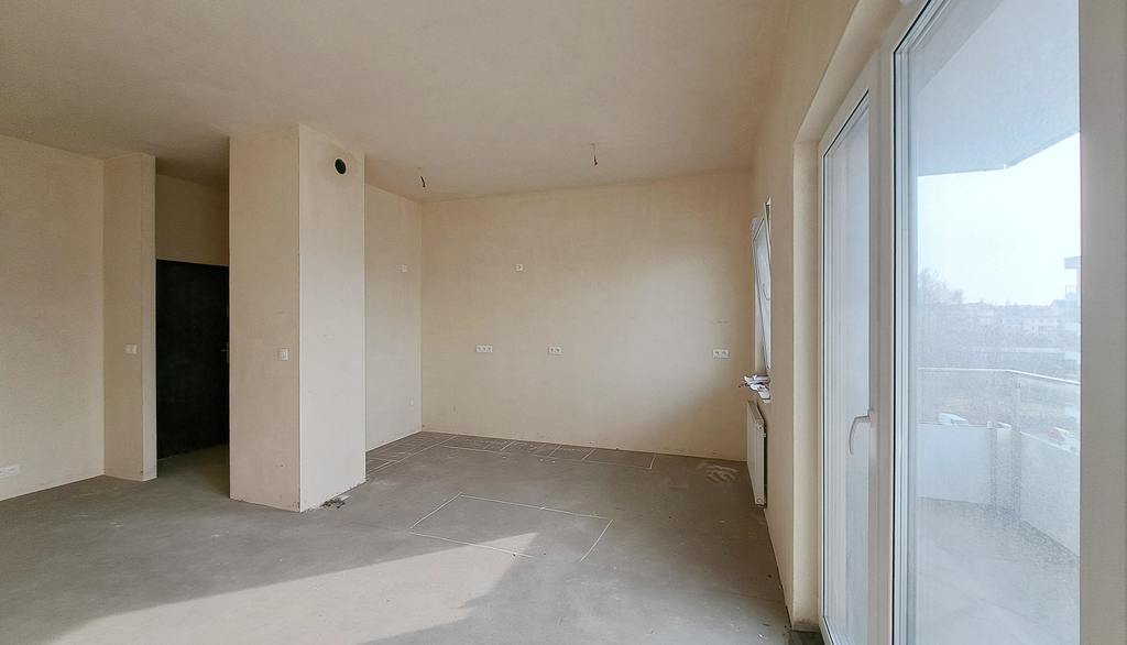 Mieszkanie jest w stanie developerskim z oknami PCV.