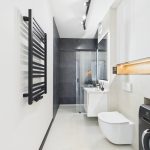 W skład wnętrza wchodzą dwie przytulne sypialnie, nowoczesna łazienka z prysznicem i funkcjonalnym, dobrze doświetlonym oświetleniem, a także elegancki salon z aneksem kuchennym, wyposażonym w niezbędny sprzęt AGD.