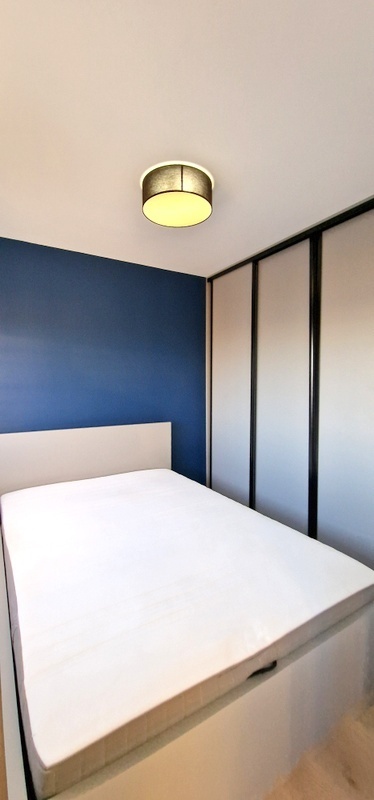 -Sypialnia – komfortowa i nowoczesna, z dużą szafą pod wymiar, zapewniającą mnóstwo miejsca do przechowywania (szuflady, półki).